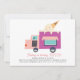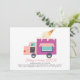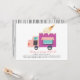 This cute and modern ice cream birthday invitation features a white background with an ice cream truck in pink and purple. The reverse side features a white background with stripes in black. Personalise for your needs. You can find more matching products at my store.