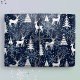 This whimsical gift wrap features a festive Nordic woodland scene with deer, Christmas trees, and snowflakes. With tiny golden stars, it is ready to add a touch of magic and wonder to your winter holiday celebrations with your loved ones. Midnight blue background, white deer and trees, and slate blue-grey snowflakes. Original artwork by Marketa Stengl.