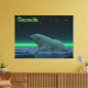 A peaceful moment in the long Arctic night. A Polar Bear rests at the edge of an open area in the pack ice. The Northern Lights glow in the distance; bright stars twinkle overhead. Text reading "Canada" appears in glowing green and white. Polar bears are endangered. How much longer will scenes like this be able to occur? Please help save Polar Bears from extinction.