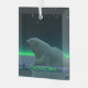 A peaceful moment in the long Arctic night. A Polar Bear (Ursus maritimus) rests at the edge of an open area in the pack ice. The Northern Lights glow in the distance; bright stars twinkle overhead. Add your own text. Polar bears are endangered. How much longer will scenes like this be able to occur? Please help save Polar Bears from extinction.