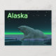 A peaceful moment in the long Arctic night. A Polar Bear rests at the edge of an open area in the pack ice. The Northern Lights glow in the distance; bright stars twinkle overhead. Text reading "Alaska" appears in glowing green and white. Polar bears are endangered. How much longer will scenes like this be able to occur? Please help save Polar Bears from extinction.