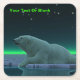 A peaceful moment in the long Arctic night. A Polar Bear rests at the edge of an open area in the pack ice. The Northern Lights glow in the distance; bright stars twinkle overhead. Add your own text. Polar bears are endangered. How much longer will scenes like this be able to occur? Please help save Polar Bears from extinction.