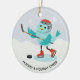 Celebrate the holiday season with a special gift for ice hockey players. This personalised Christmas ornament features an illustration of a cute bird dressed in hockey gear, complete with a helmet, hockey stick, puck, and ice skates. The design is set against a background of delicate falling snow to create a wintery feel. Customisable typography that says, “Hockey and Holiday Cheer,” allows you to add your own text or phrase on the front. On the back, you can add your own photo, text, and current year to create a one-of-a-kind keepsake that will be treasured for years to come. Perfect for hanging on the Christmas tree, this ornament will make a unique gift for hockey enthusiasts