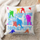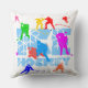 The snowflakes decorated Ice Hockey text of blue colour and colourful silhouette images of hockey players. Funny, elegant, one-of-a-kind through pillow for anyone. Play hockey, have fun and be happy!