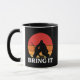 Hockey theme mug with silhouette hockey goalie and text that reads Bring It!