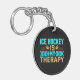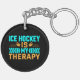Hockey theme keychain with hockey pucks and text that reads Ice Hockey is My Therapy!