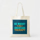 Hockey theme tote bag with hockey pucks and text that reads Ice Hockey is My Therapy!