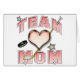 A hockey stick and star crested hockey puck serve as background for our pink heart and the words, "Team Mum," for this ice hockey Team Mum design.
