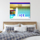A picture of everyday life, the colourful, modern image on this Stretched Canvas Print is a sight familiar to many of us, the ice machine outside the convenience store. In this original photograph by ZoeSPEAK, the bright blue letters, ICE, can't be missed surrounded by sparkling white and aqua blue tiles. Refreshment to go with the ice is described by a red and green neon sign in the window of the store, making this photo a cool addition to a modern space.