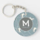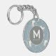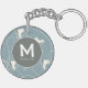 Stylish trendy bluish grey ice skate and snowflake pattern keychain, personalised with your monogram initial and name.
