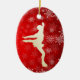 Ice Skater Gold Snowflakes on Bright Red Ceramic Tree Decoration