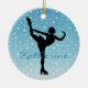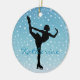 Ice Skater Ornament on turquoise background with white stars. All text customisable, front and back!