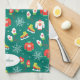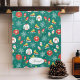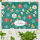 Add a festive custom touch to your home holiday dining room Christmas decor with this fun teal pattern with ice skates, sweaters, snowflakes, and mittens. Add your family monogram initial for a personalised touch!