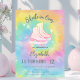 Cute ice skates and snowflakes on the colorful tie dye background. Celebrate your winter birthday with our editable Ice Skating Invitation Template for the birthday girl! . Customize every detail with ease, thanks to fully editable text