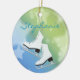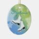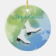 Ice Skates Ornament. with a pair of white ice skates on a lime green and aqua blue starry background. All text customisable, front and back!