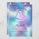 Cute ice skates and snowflakes on the holographic background. Celebrate your winter birthday with our editable Ice Skating Invitation Template for the birthday girl! . Customize every detail with ease, thanks to fully editable text