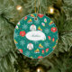 Ice Skates Snowflakes Teal Monogram Christmas Ceramic Tree Decoration