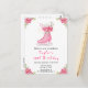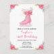 This elegant and festive birthday invitation features a watercolor pink ice skating boot and beautiful floral pink poinsettia flowers. The text combines handwritten script and sans serif fonts for a stylish and modern look. This is perfect for winter and Christmas birthday parties.