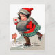 Ice skating girl with love letter. St. Valentine's Postcard