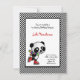 A fun invitation for any skating party. it features a black and white checked border around the invitation. A picture of a black and white panda with red ice skates sits at the bottom. The text is done in coordinating black and red and is completely customisable.