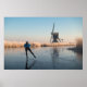 Poster print of an athlete ice skating on a frozen river past hoar-frosted reeds and a windmill on a beautiful winter morning in the Netherlands.