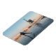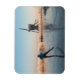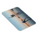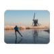 Rectangular photo magnet with an athlete ice skating on a frozen river past hoar-frosted reeds and a windmill on a beautiful winter morning in the Netherlands.