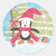 Ice skating penguin round stickers . © ArianeC Illustrations