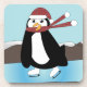 An adorable plaid scarf wearing penguin enjoys a winter day with some ice skating on a set of cork coasters