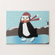An adorable plaid scarf wearing penguin enjoys a winter day with some ice skating on a puzzle