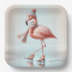 A whimsical flamingo glides gracefully across an icy surface wearing ice skates, a warm scarf, and a cosy winter hat