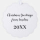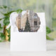 Ornament card features an original photograph of a Christmas tree and ice skaters at London's Natural History Museum.