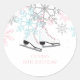 Ice Skating Snowflakes Pink blue silver glitter Classic Round Sticker