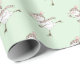 Adorable holiday gift wrap features hand drawn whimsical ice skating snowman on pastel green background
