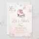 Ice Skating Winter Birthday Party Let's Skate Gold Invitation