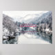 Ice & Snow | Red Bridge in Winter, Japan Poster