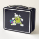 This is a standard metal lunchbox that appears to work just fine. We designed this box ourselves with an uploaded photo and custom text on the front and back. It looks absolutely beautiful except the front of the lunchbox is not centered like it shows in the photo. The print borders don't align with the inset flat part of the box where the preview photo online showed it perfectly centered in there. The back looks nice and centered though.