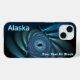 A blue-toned fractal image resembling a swirling group of whales under polar ice; perhaps beluga or minke whales which frequent the poles. Text reading "Alaska" also appears. Customise by adding your own additional text.