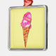 A cute and whimsical design of hand drawn hand illustrated ice-cream in a waffle cone. This pink brightly coloured sweet treat is perfect for a sweet tooth.