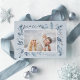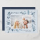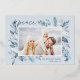 This simple and elegant nature-inspired holiday card features your favourite horizontal or landscape-orientated photo adorned at the corners with sprigs of graceful icy blue watercolor foliage with silver foil accents. "Peace" appears at the top left in chic handwritten script, with your names and the year at the bottom right. An elegant botanical design for your Christmas 2022 greetings.