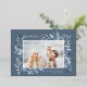This simple and elegant nature-inspired holiday card features your favourite horizontal or landscape-orientated photo adorned at the corners with sprigs of graceful icy blue watercolor foliage with silver foil accents. "Peace" appears at the top left in chic handwritten script, with your names and the year at the bottom right. An elegant botanical design for your Christmas 2022 greetings.