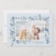 This simple and elegant nature-inspired holiday card features your favorite horizontal or landscape-oriented photo adorned at the corners with sprigs of graceful icy blue watercolor foliage. "Merry" appears at the top left in chic handwritten script, with your names and the year at the bottom right. An elegant botanical design for your Christmas 2021 greetings.