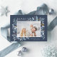 This simple and elegant nature-inspired holiday card features your favorite horizontal or landscape-oriented photo adorned at the corners with sprigs of graceful icy blue watercolor foliage. "Peace" appears at the top left in chic handwritten script, with your names and the year at the bottom right. An elegant botanical design for your Christmas 2021 greetings.