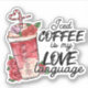 Cute "Iced coffee is my love language" pink and red hearts and flowers sticker
