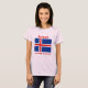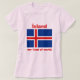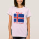 On the front of this shirt an editable title and slogan accompanies the Icelandic flag with its white fimbriated offset red cross on blue. The back displays a detailed map of Iceland.