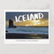 ICELAND, land of ice and fire postcard, beautiful sunset picture at Djúpalónssandur black sand beach, Snaefellsnes trip. Black rock pillar and the ocean with black sand.