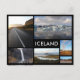 Postcard of a collage with multiple photos of the wild landscapes of Iceland, like Jokulsarlon glacier lake, Svartifoss waterfall and Lake Myvatn in a black frame with the text: 'Iceland'.