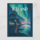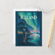 Iceland Northern Lights Illustration Travel Art Vi Postcard