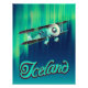 Iceland vintage style Travel poster of the Northern lights and a light aircraft flying past.