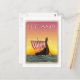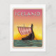 Iceland Viking Travel poster, featuring a long ship on the ocean during the sunset.