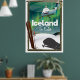 Iceland vintage northern lights ski poster - Icelandic helicopter vacation print.